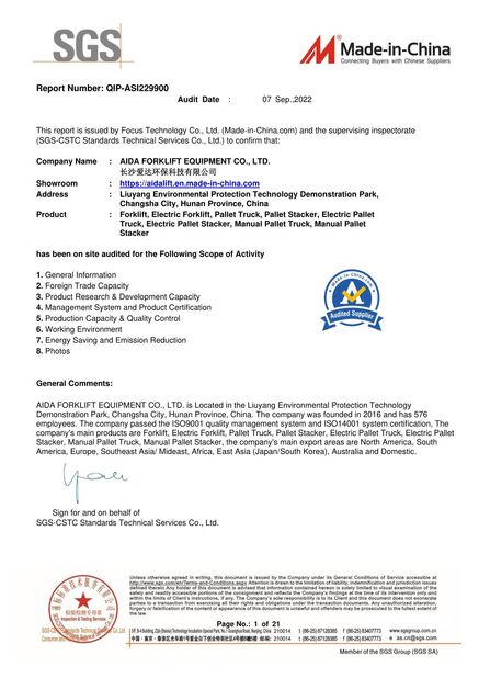 أنشأت AIDA نظامًا صارمًا لضمان الجودة وقد اجتازت شهادة ISO9001، ISO14001، SGS، و CE.